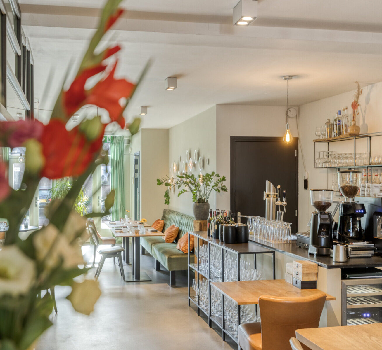 Het horecagedeelte ademt licht, ruimte en moderniteit. Een open keuken en centrale bar vormen het kloppend hart van het restaurant, waar circa dertig gasten in een royale opstelling genieten van verfijnde gerechten. De huidige exploitatie is al jarenlang succesvol en wordt gewaardeerd met een Bib-Gourmand-notering in de Michelin Guide. Naast de stijlvolle inrichting vormt de groene binnentuin een groot pluspunt: een rustige terrastuin, eveneens geschikt voor zo’n dertig couverts, waar gasten midden in het dorp in alle rust kunnen lunchen of dineren in de buitenlucht. Hier gaan gastronomie en ambiance naadloos samen.