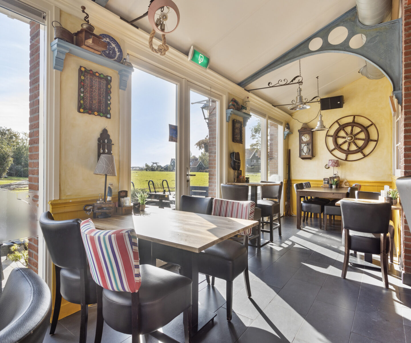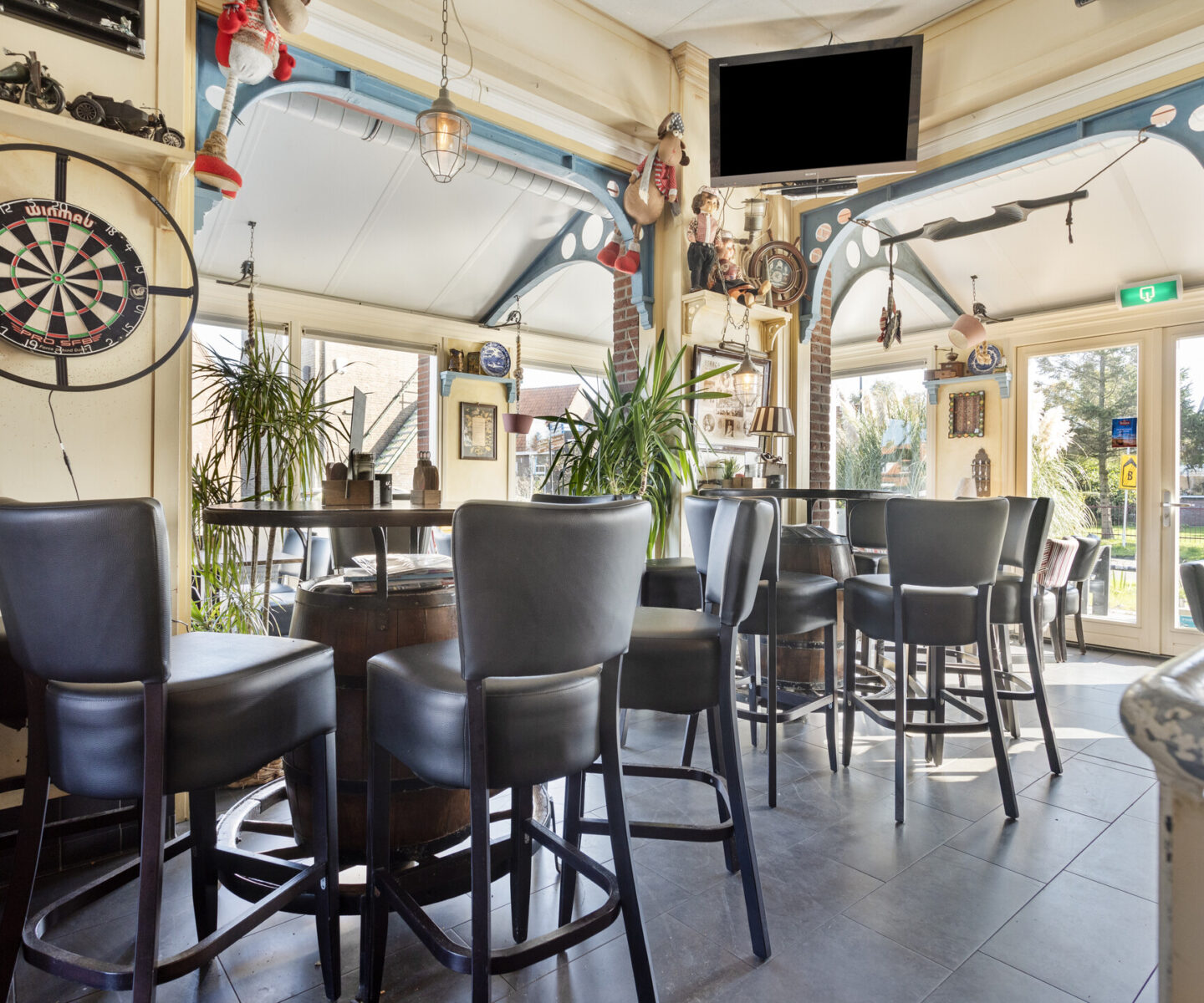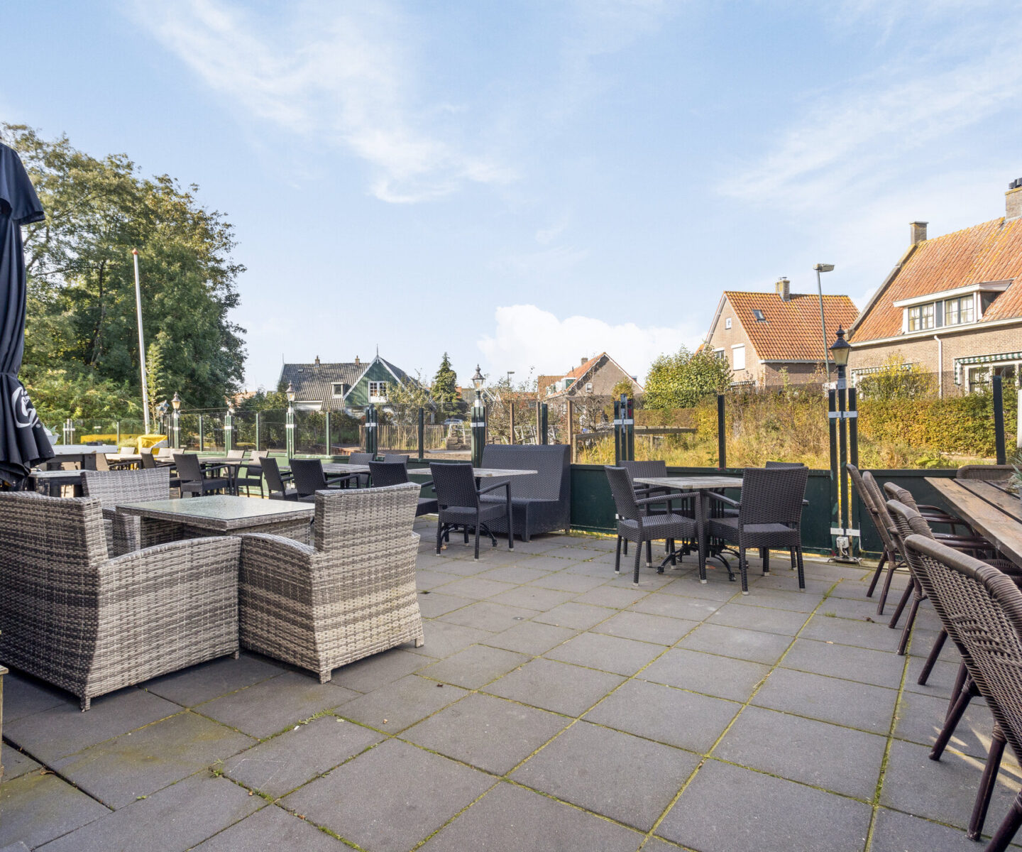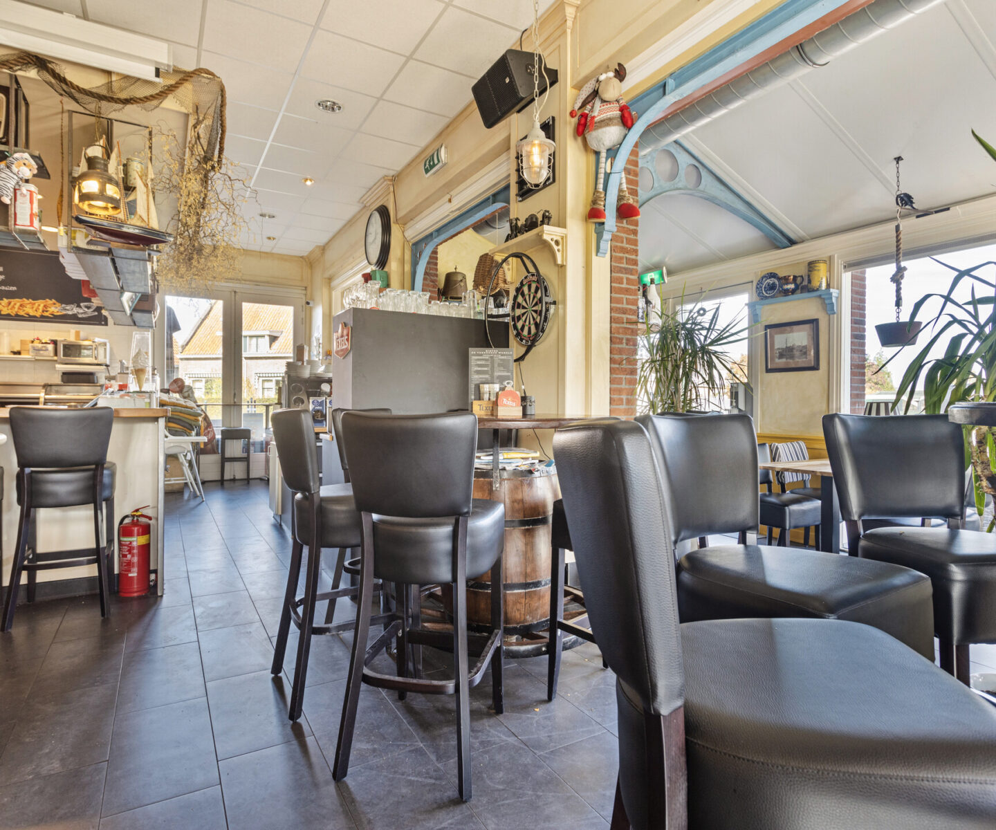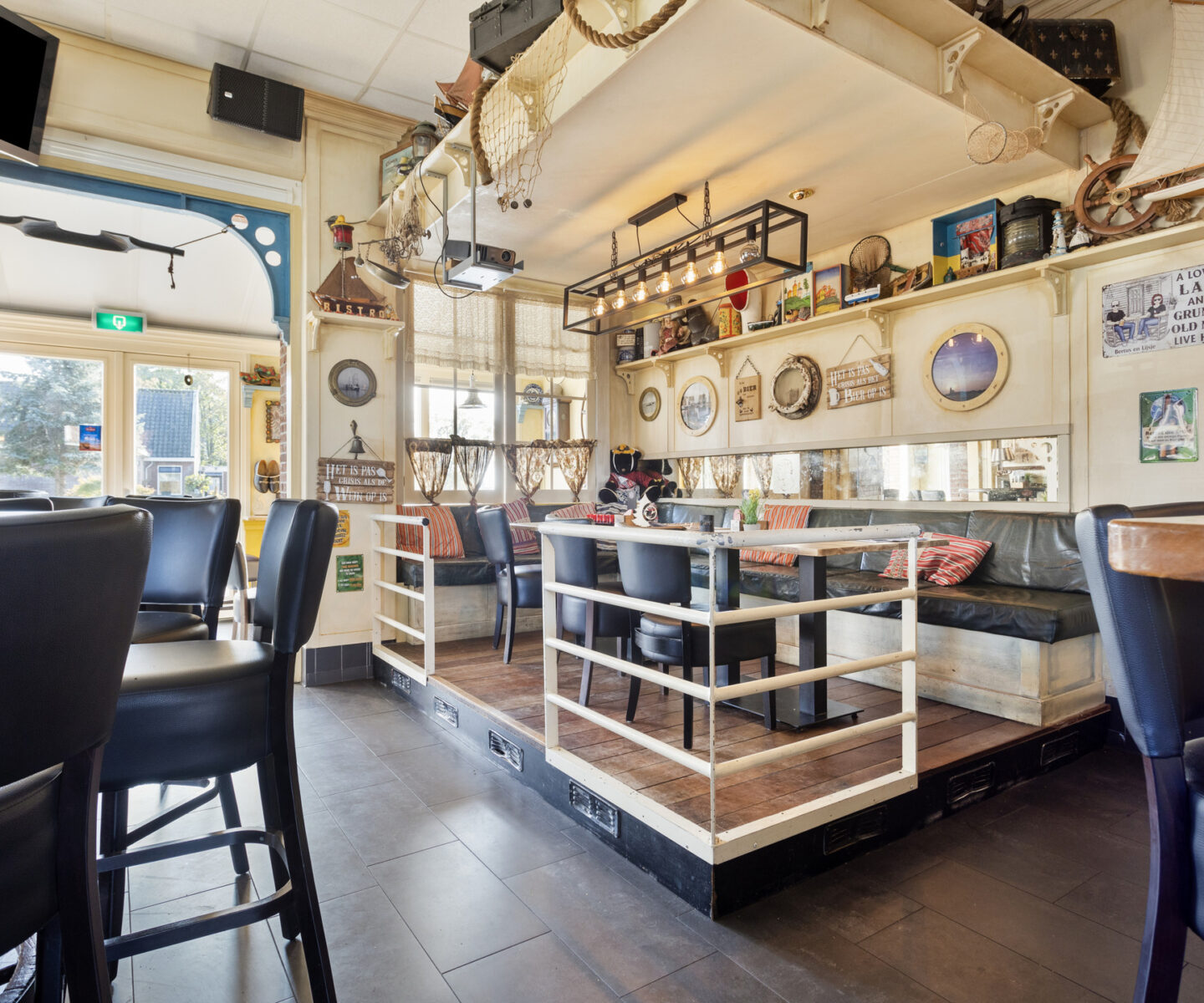 Het restaurantgedeelte biedt plaats aan circa 50 personen. Het terras geeft daarnaast nog eens plaats aan 80-100 personen.