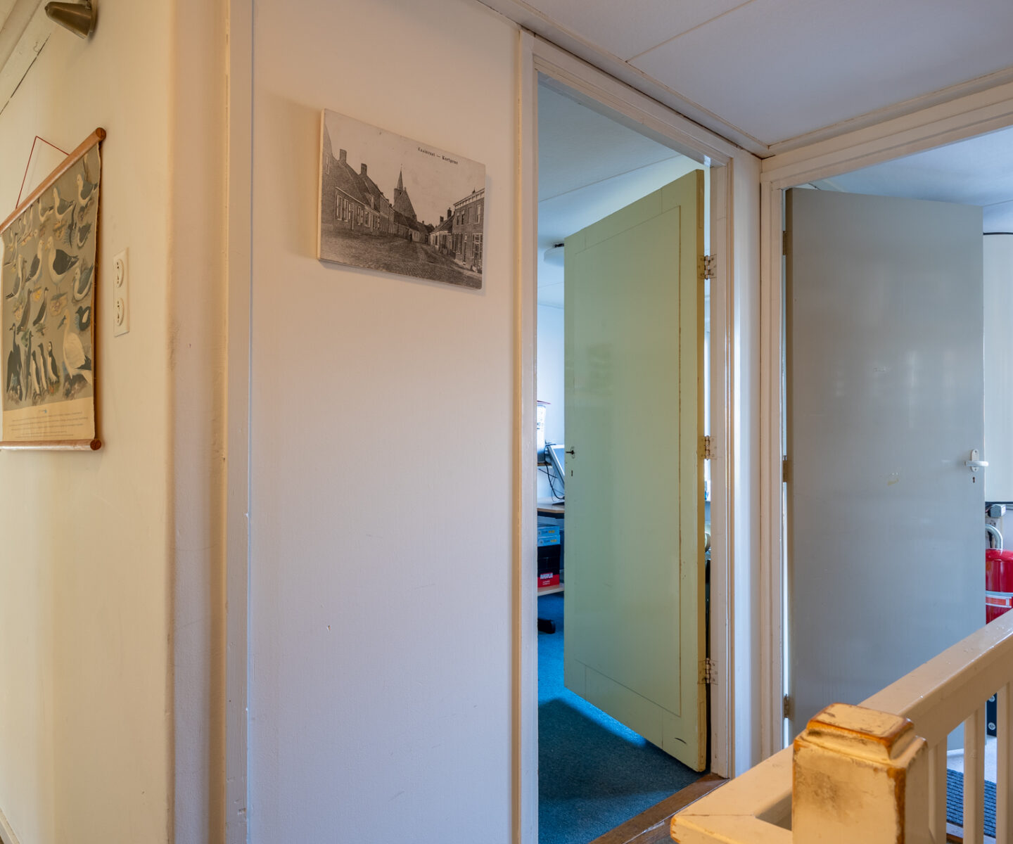 De eerste verdieping omvat circa 63 m² VVO en is ingedeeld met een overloop, drie slaapkamers, een studeerkamer, een badkamer en een kantoorruimte. Deze woonruimten verkeren in enigszins verouderde staat, aangezien zij enkel zijn gebruikt als gastenverblijf voor de kinderen.