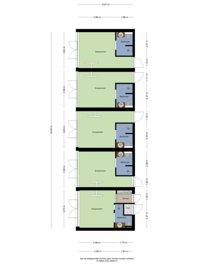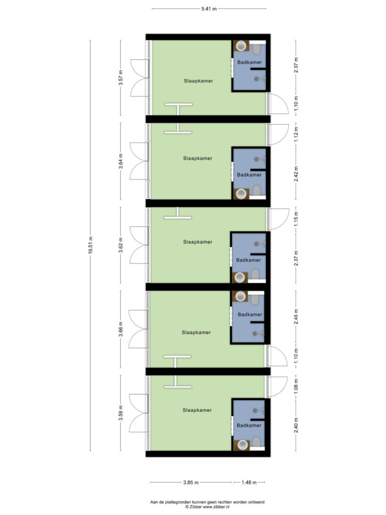 De vierkante meters zijn bepaald aan de hand van een meting ter plaatse. Er is een meetrapport conform NEN2580 beschikbaar. Desalniettemin kunnen (geringe) afwijkingen mogelijk zijn. Aan de genoemde oppervlakten kunnen derhalve geen rechten worden ontleend.