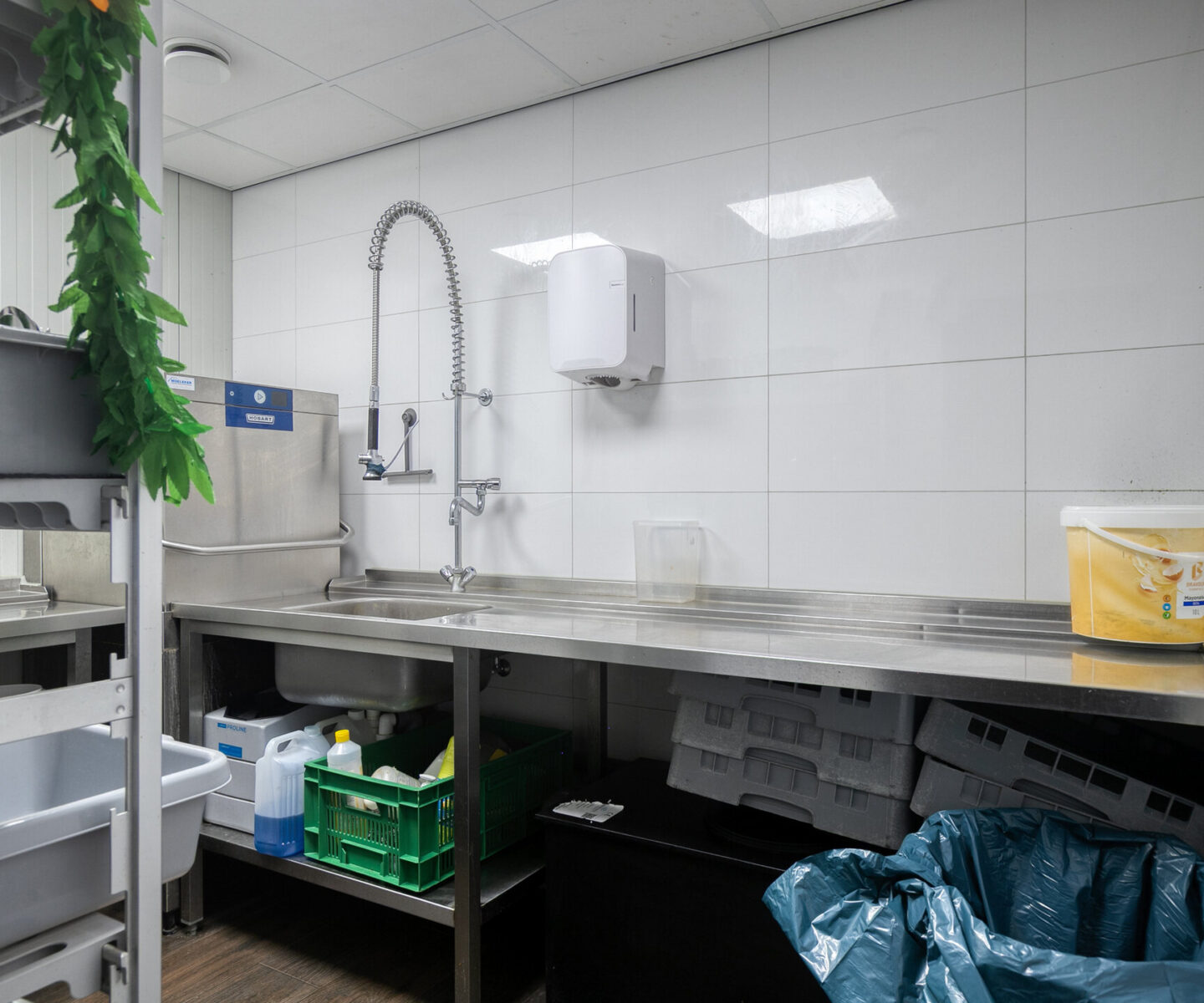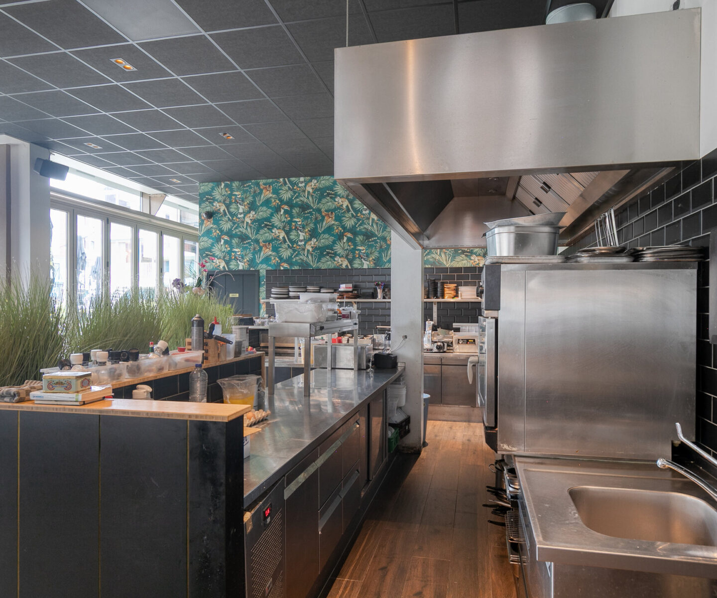 – Keuken aan de achterzijde, direct verbonden met het restaurant